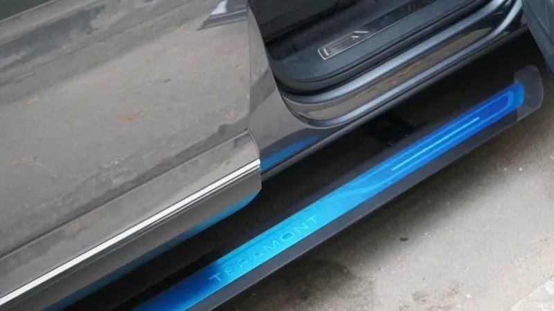 Bệ bước điện cao cấp có đèn LED với tên xe Teramont phát sáng, tiện lợi hỗ trợ cho việc lên xuống xe và tăng tính hiện đại, sang trọng của xe.
